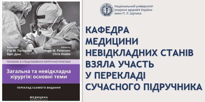 The Department of Emergency Medicine of the Shupyk National Healthcare University of Ukraine took an active part in translating the modern textbook General and Emergency Surgery: Core Topics, which was published in 2025. This edition is a Ukrainian translation of the 7th English edition (2024) of Core Topics in General and Emergency Surgery: A Companion to Specialist Surgical Practice, published by Elsevier, in accordance with the license.