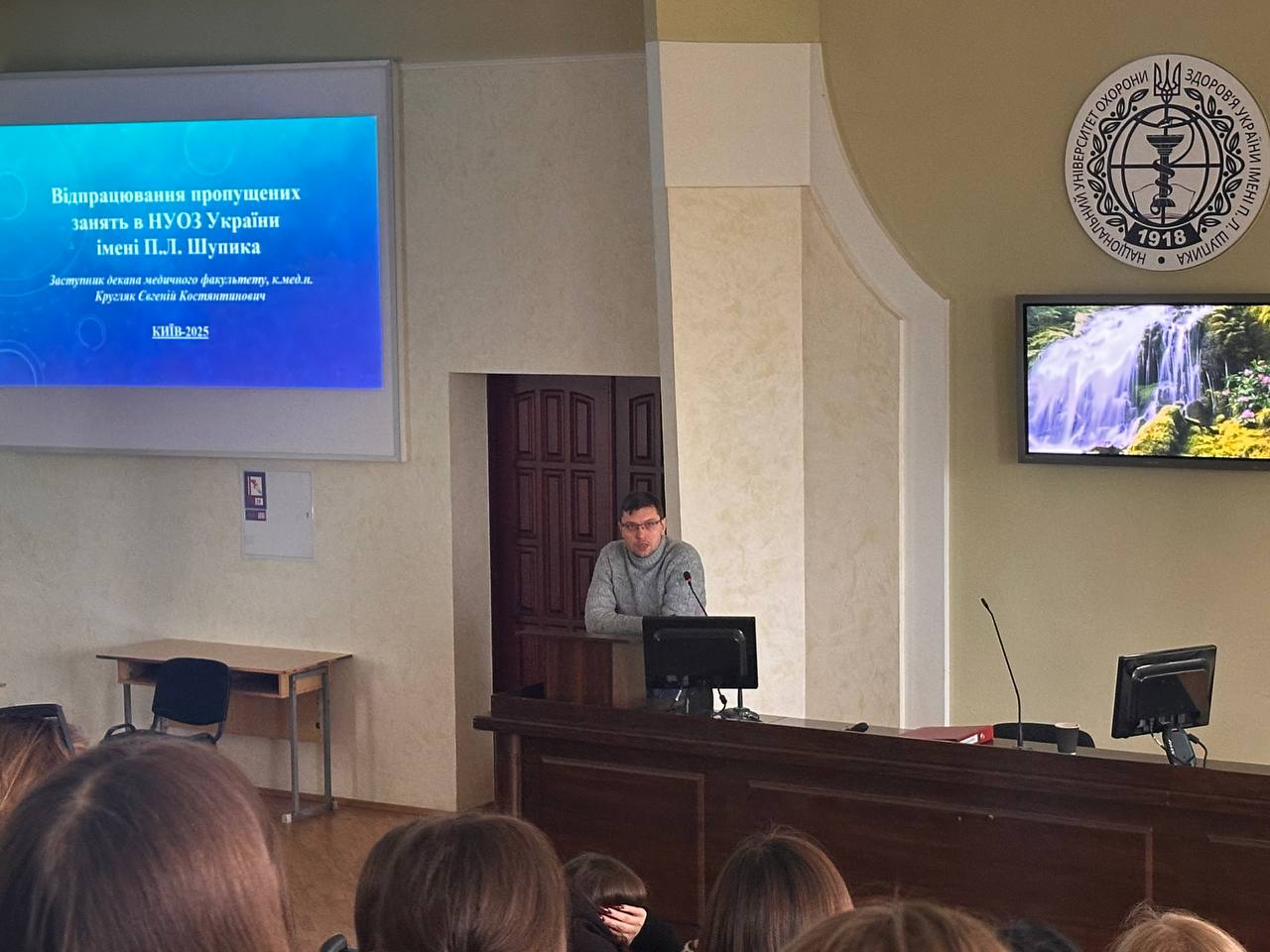 Під час зустрічі заступник декана медичного факультету, доктор філософії Кругляк Євгеній Костянтинович, наголосив на важливості дотримання навчальної дисципліни, а також нагадав студентам процедуру відпрацювання пропусків.