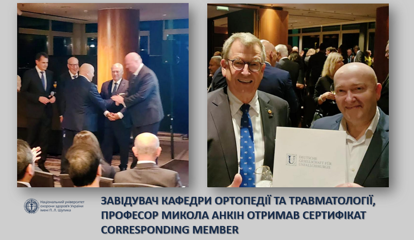 Президент ASIR, завідувач кафедри ортопедії та травматології Національного університету охорони здоров’я України імені П. Л. Шупика, професор Микола Львович Анкін отримав сертифікат Corresponding Member (члена-кореспондента) від Німецького товариства травматології (DGU). Відзнаку вручено в Берліні 29 жовтня 2025 року за вагомий внесок у розвиток міжнародного партнерства між ASIR та DGU.