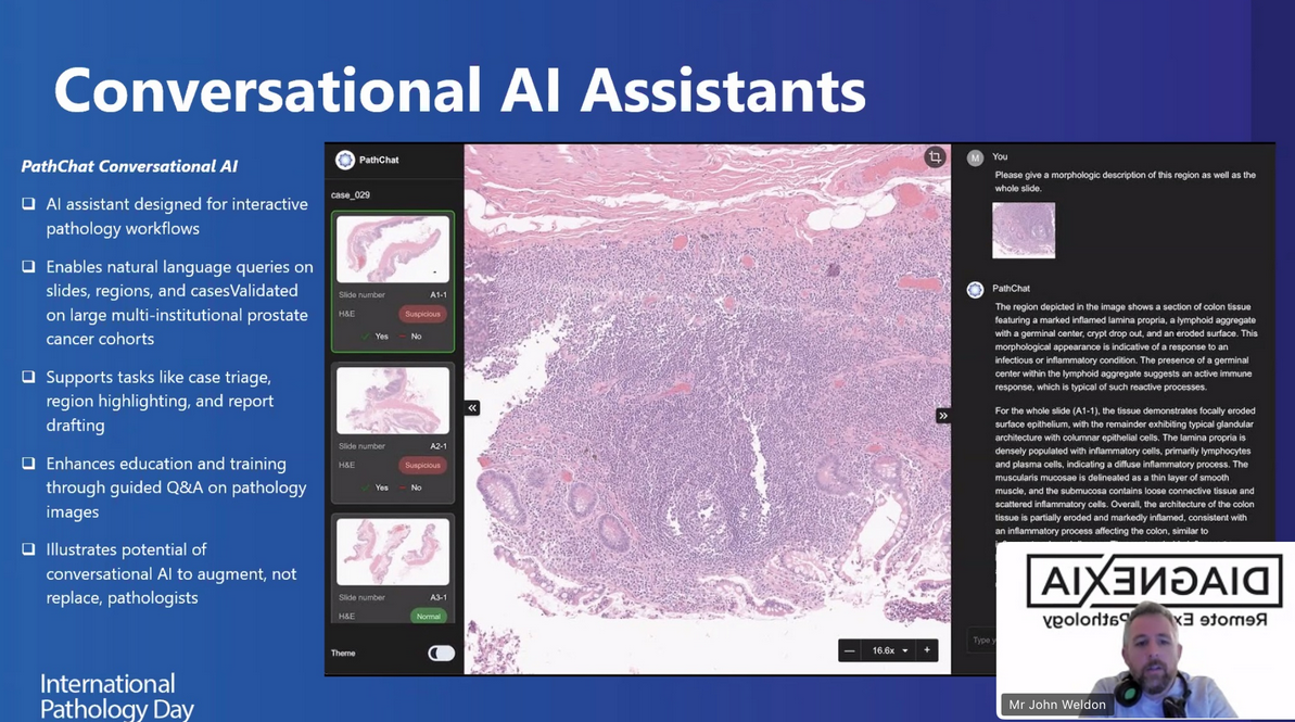 Професор Роман Девід Бюлов з Університетської лікарні Аахена (Німеччина) представив доповідь про бар'єри, компетенції та найкращі практики впровадження ШІ в освіту патологів. Водночас Джон Уелдон, директор з клінічного ШІ компанії Deciphex (Нью-Йорк), поділився баченням щодо нових тенденцій та майбутніх технічних напрямків у обчислювальній патології. Ці доповіді підкреслили, як технології ШІ вже сьогодні допомагають підвищувати точність діагностики та оптимізувати робочі процеси.