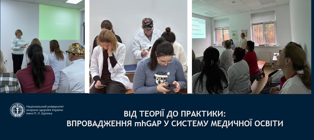 У тренінговому центрі впровадження компетентністного підходу в загальній лікарській практиці Навчально-наукового інституту інноваційних медичних та освітніх технологій (ННІ ІМОТ) імені Андрія Ткаченка НУОЗ України імені П.Л. Шупика завершився цикл тематичного удосконалення «Основи клінічної практики у сфері психічного здоров’я (mhGAP)», що відбувався з 22.10.2025 р. по 06.11.2025 р. Це навчання є продовженням інтеграції Програми ВООЗ mhGAP у вищу медичну освіту в Україні, зокрема в НУОЗ України імені П.Л. Шупика, за примірною програмою, розробленою робочою групою при Координаційному центрі КМУ, за участі експертів ВООЗ, МОЗ, на основі Керівництва ВООЗ mhGAP. Навчання покликане подолати прогалини у сфері психічного здоров’я у вищій медичній освіті на до- та післядипломному рівні.