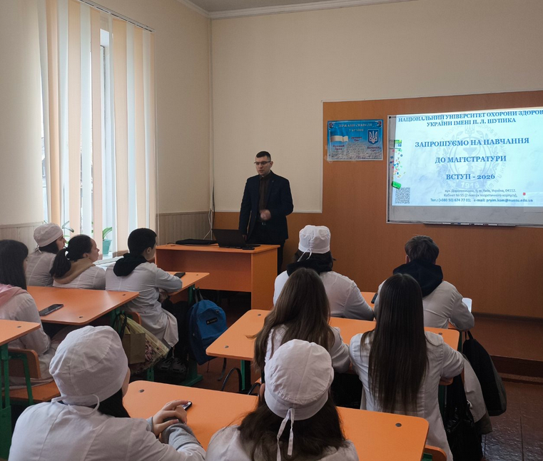 Під час заходу Євгеній Костянтинович ознайомив майбутніх фахівців із діяльністю Національного університету охорони здоров’я України імені П. Л. Шупика, освітніми можливостями та перспективами продовження навчання за програмами підготовки магістрів за освітньо-професійними програмами “Медицина”, “Педіатрія”, “Медична психологія”, “Фармація”, “Стоматологія”.