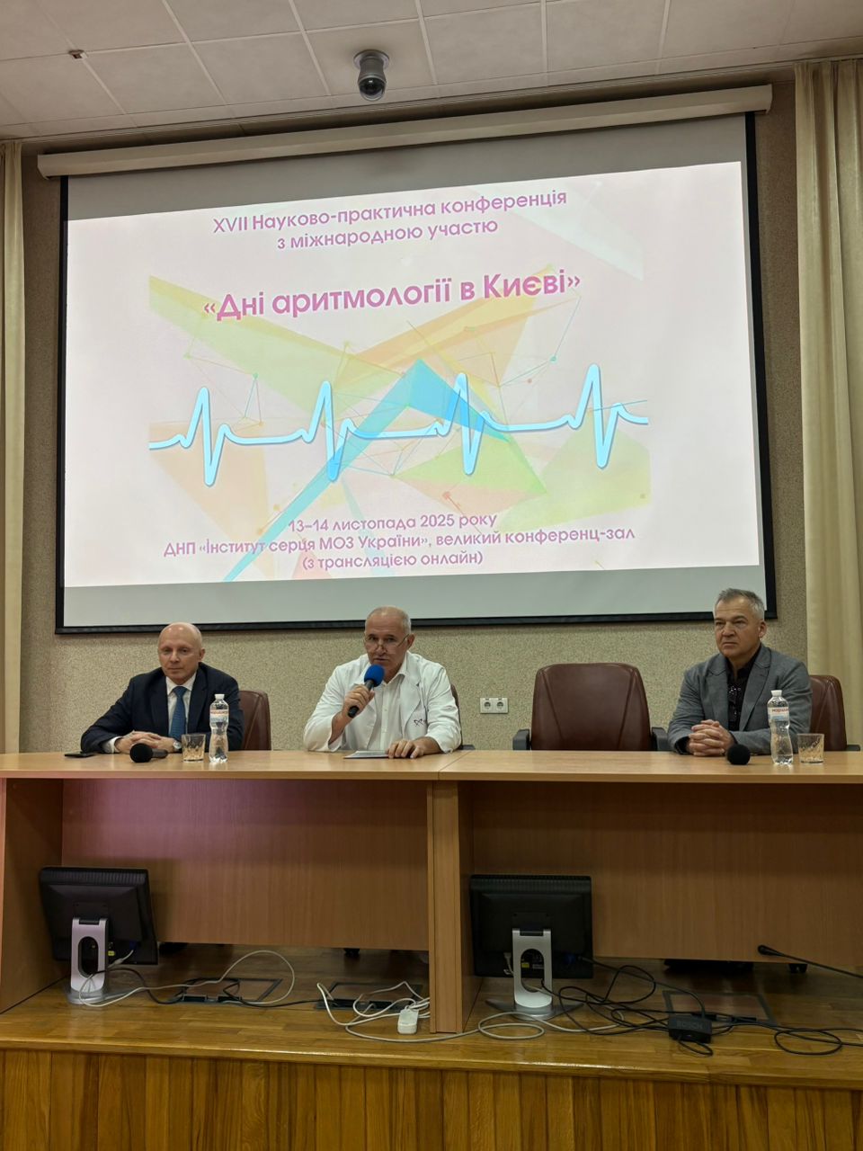 13-14 листопада 2025 року в Інституті серця МОЗ України відбулася XVIІ науково-практична конференція з міжнародною участю «Дні аритмології в Києві». Мета щорічних аритмологічних форумів – висвітлення найважливіших досягнень в галузі діагностики, інтервенційного та медикаментозного лікування аритмій серця. Модераторами конференції є завідувач кафедри функціональної діагностики НУОЗ України імені П.Л. Шупика професор Олег Жарінов і завідувач кафедри внутрішньої медицини №1 Одеського національного медичного університету професор Юрій Карпенко. Конференцію було зареєстровано як захід БПР кардіологів та лікарів суміжних спеціальностей. Із вступним словом до учасників конференції звернувся генеральний директор Інституту серця МОЗ України член-кореспондент НАМН України професор Борис Тодуров.