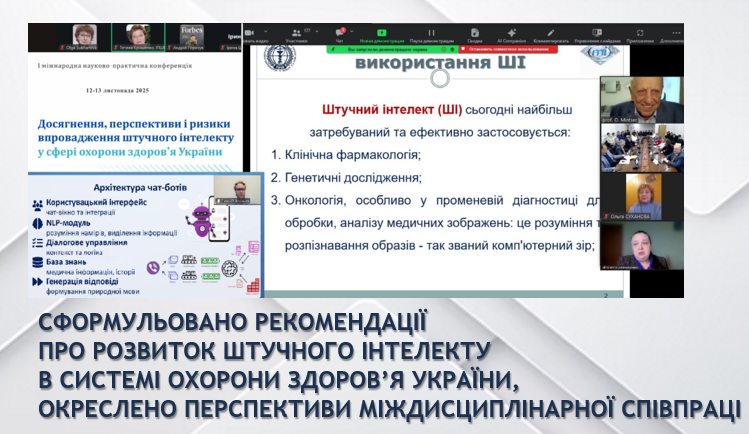 Розширення інформаційних мереж, хмарних обчислень та онлайн-платформ поряд із поширенням мобільних пристроїв, демократизувало обмін інформацією. Нові революційні ідеї та технології в охороні здоров’я та біології пов’язані з впровадженням штучного інтелекту (ШІ). Представлення й обговорення згаданих та інших питань застосування ШІ відбулось 12–13 листопада 2025 р. у рамках І Міжнародної науково-практичної конференції «Досягнення, перспективи і ризики впровадження штучного інтелекту у сфері охорони здоров’я України». Соорганізатором заходу виступив НУОЗ України імені П. Л. Шупика, представлений науково-педагогічними працівниками кафедри природничих наук, інформаційних технологій та філософії.