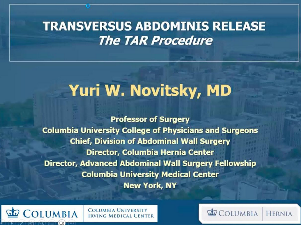 У заході взяли участь лікарі-інтерни, аспіранти, слухачі курсів тематичного удосконалення та спеціалізації з хірургії, а також викладачі кафедри. Лекція була присвячена сучасній методиці лікування складних гриж великих розмірів, автором якої є сам професор Ю. Новіцький. Методика TAR забезпечує надійне укріплення дефекту черевної стінки та створення оптимального об’єму черевної порожнини без підвищення внутрішньочеревного тиску.