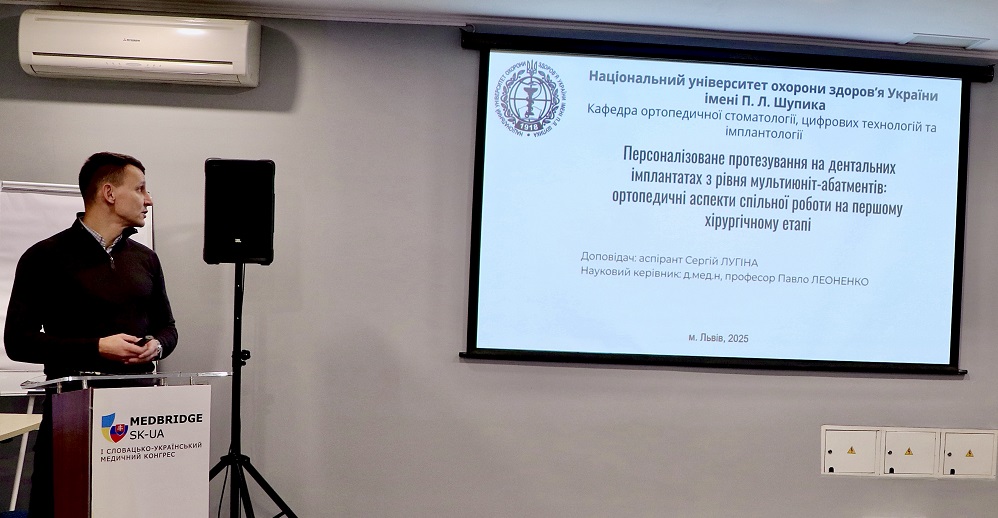 4-6 грудня 2025 року у Львові відбулася подія міжнародного масштабу - І Словацько-український медичний конгрес «MEDBRIDGE SK-UA 2025». Науковці кафедри ортопедичної стоматології, цифрових технологій та імплантології Національного університету охорони здоров'я України імені П.Л. Шупика взяли активну участь у роботі форуму, представивши університет на найвищому рівні.