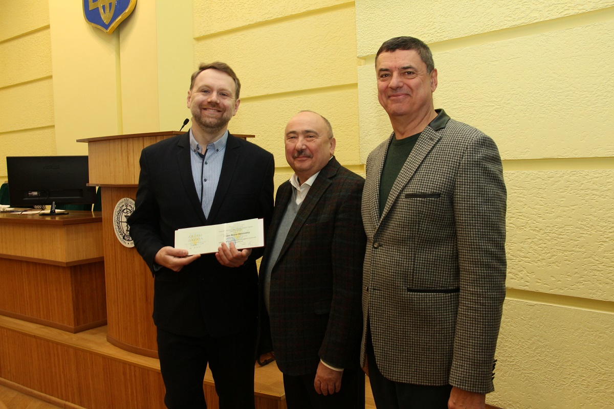 Ректор, академік НАМН України, професор В’ячеслав Камінський та голова Вченої ради, проректор з науково-педагогічної роботи, чл.-кор. НАМН України професор Олександр Толстанов на підставі рішення Атестаційної колегії Міністерства освіти та науки України від 11 грудня 2025 вручили атестати вченого звання професора Ігорю Вербицькому по кафедрі медицини невідкладних станів, Світлані Вовк – по кафедрі публічного управління, адміністрування та соціальної роботи, Юрію Фломіну – по кафедрі неврології. Атестати доцента отримали: Леонід Веселовський – по кафедрі фтизіатрії і пульмонології, Катерина Іваськіва – по кафедрі ендокринології та Василь Пехньо – по кафедрі ортопедичної стоматології, цифрових технологій та імплантології. А також представники ТОВ «Навчально-виробничій центр ДНІПРО 24» вручили Подяку чл.-кор. НАМН України професору Миколі Поліщуку, завідувачу кафедри нейрохірургії та нейробіології.